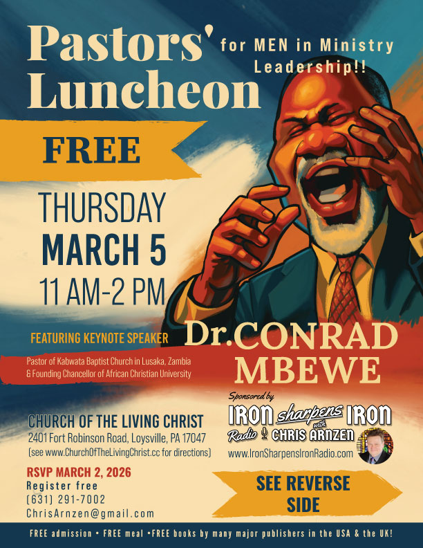 What prominent Christians have said about our broadcastChris Arnzen is not afraid to deal with difficult issues or ask the hard questions. I appreciate the straightforward way IRON SHARPENS IRON tackles vital topics. It’s refreshing to hear a radio broadcast regularly deal with truly important, rather than trivial, matters.